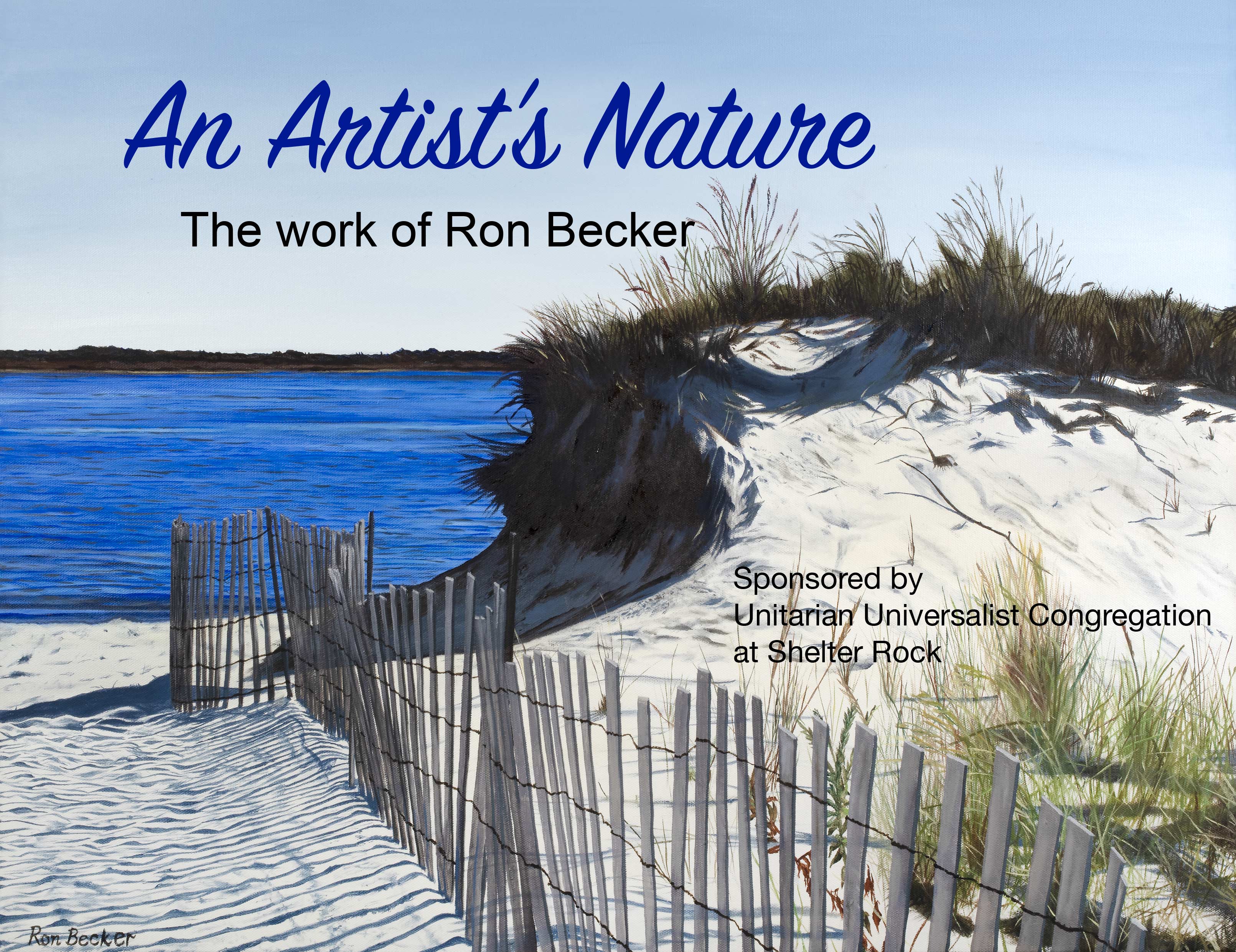 Long Island artist, Ron Becker, will be exhibiting his colorful landscape and nature paintings at the UUCSR Art Gallery. Ron will be available to share his process and the inspiration for creating his realistic work at the opening reception on Sunday, September 21, from 1:00 to 3:00 PM. The exhibit closes